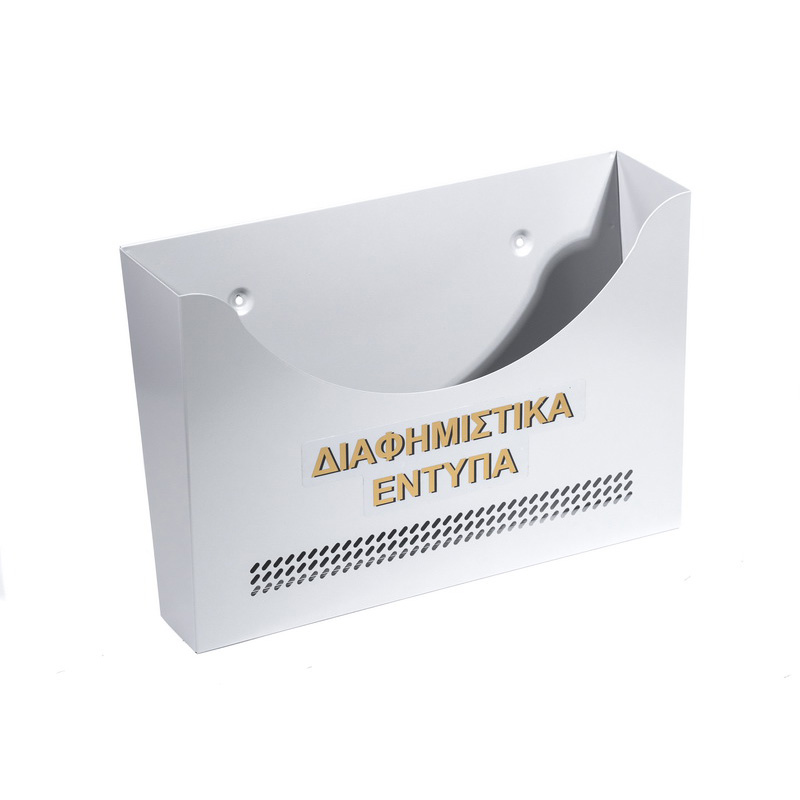 Θήκη εντύπων από ατσάλι και ηλεκτροστατική βαφή σε ποικιλία χρωμάτων για να επιλέξετε. Με μοντέρνο και πρακτικό σχέδιο.