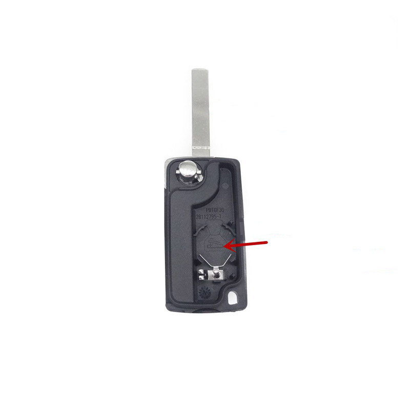 Κέλυφος τηλεχειριστηρίου Peugeot με δύο κουμπιά και θέση μπαταρίας πάνω στο κέλυφος. Έχει λάμα HU83.