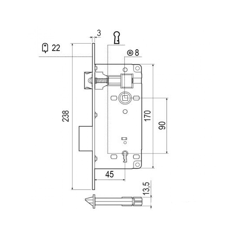 Κλειδαριά AGB μεσόπορτας, για αντικατάσταση της υπάρχουσας κλειδαριάς σας.