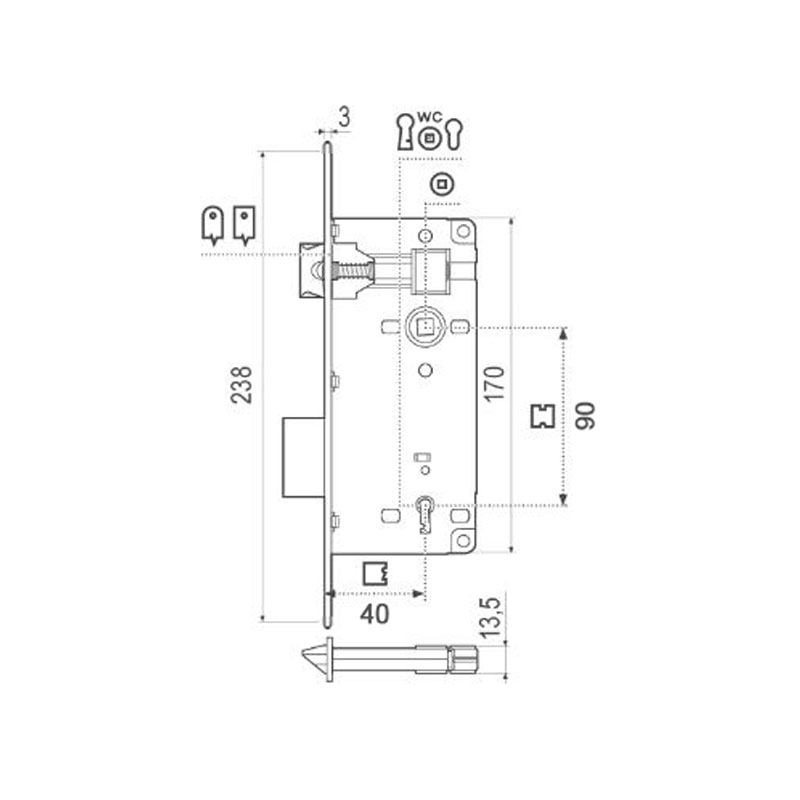 Κλειδαριά AGB μεσόπορτας 22x238x40 mm με ασημί οβάλ πλάκα.