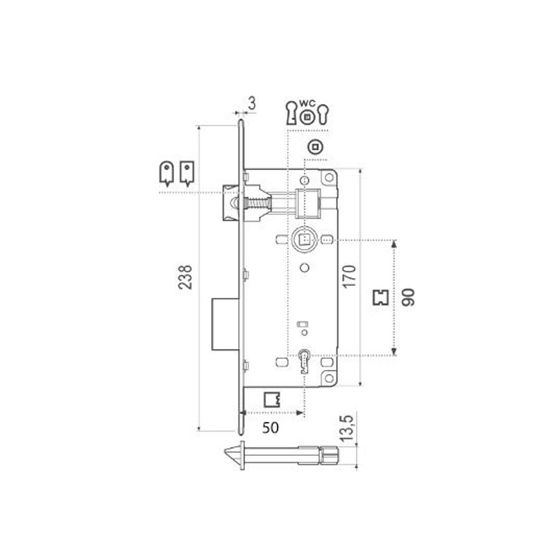 Κλειδαριά AGB μεσόπορτας 18x238x50 mm με ασημί οβάλ πλάκα.