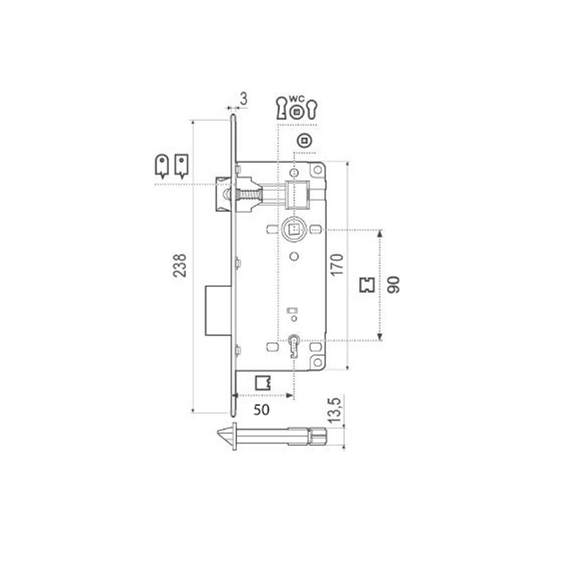 Κλειδαριά AGB μεσόπορτας 18x238x50 mm με κίτρινη οβάλ πλάκα.