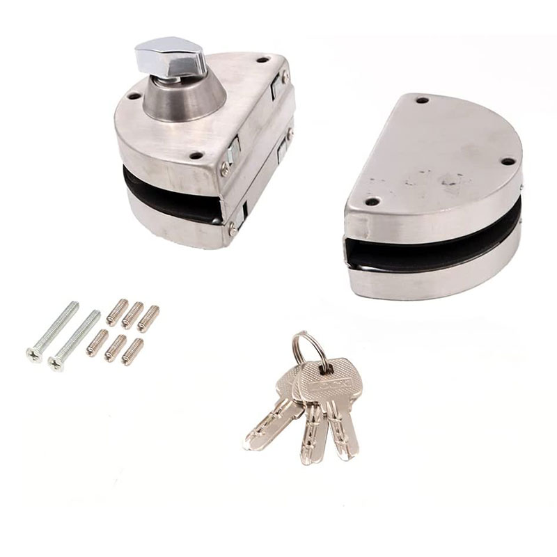 Οικονομική κλειδαριά κατάλληλη για γυάλινες πόρτες, διπλή, τοποθετείται φορετά και έχει κλειδί ασφαλείας. Σε νίκελ φινίρισμα.