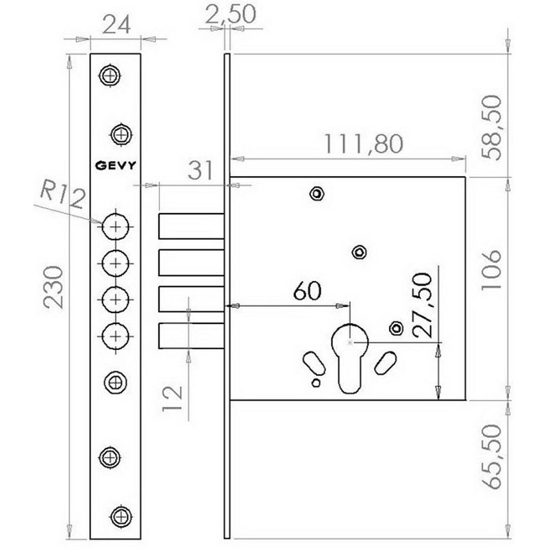 Κλειδαριά Ασφαλείας Gevy 125.060.004 κατάλληλη για ξύλινη πόρτα