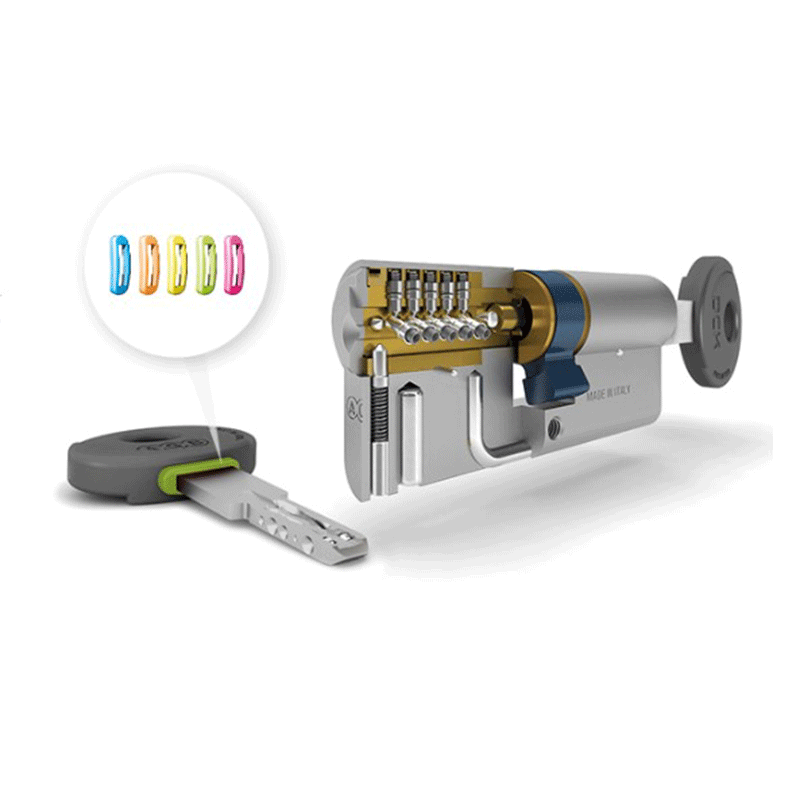 Κύλινδρος ασφαλείας από την ιταλική AGB με προστασία αντιγραφής κλειδιού. Προσφέρει υψηλή ασφάλεια και αξιοπιστία χάρη στην προστατευμένη αναπαραγωγή αντιγράφων και τεχνολογία κατασκευής του.
