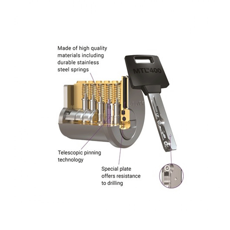 Κύλινδρος υψηλής ασφαλείας από την Mul-T-Lock. Ο αφαλός ασφαλείας MTL400,σας παρέχει προστασία από κακόβουλη παραβίαση, με anti-drill προστασία και ελεγχόμενη αντιγραφή.