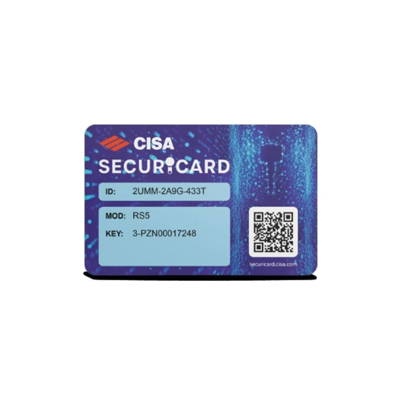 Η SECURiCARD, η οποία συνοδεύεται από κάθε κύλινδρο RS5, σας βοηθά να διατηρήσετε το κλειδί σας ασφαλές. Αιτήματα για διπλότυπα μπορούν να υποβληθούν μόνο σε εξουσιοδοτημένα κέντρα CISA σε εθνικό επίπεδο με την παρουσίαση της SECURiCARD ή με την υποβολή ενός αιτήματος από τον λογαριασμό σας.