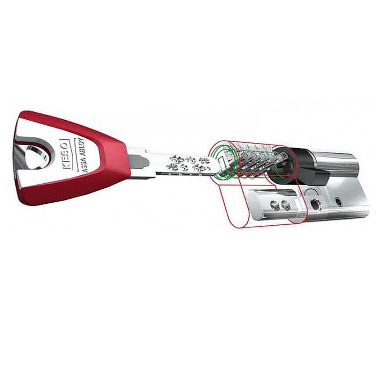 Μη αντιγράψιμος κύλινδρος υψηλής ασφάλειας από τον ευρωπαϊκό οίκο Assa Abloy. Ο Keso 8000 έχει πατενταρισμένο σύστημα προστασίας ως το 2034.