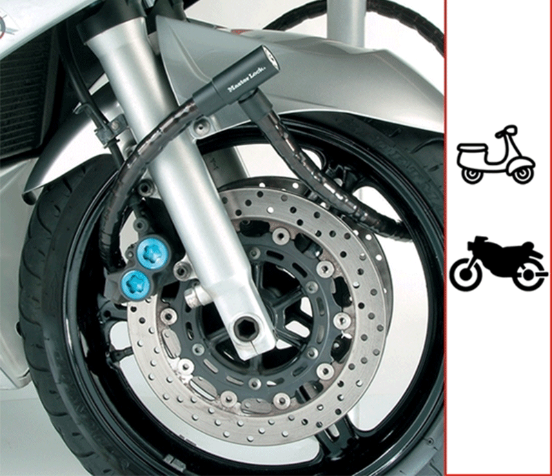 Η κλειδαριά ασφαλείας τύπου «Φίδι» για μοτοσυκλέτες της Masterlock έχει μήκος 2 m και διαθέτει ενισχυμένο χάλυβα διαμέτρου 22 mm για μέγιστη αντοχή και ευελιξία.