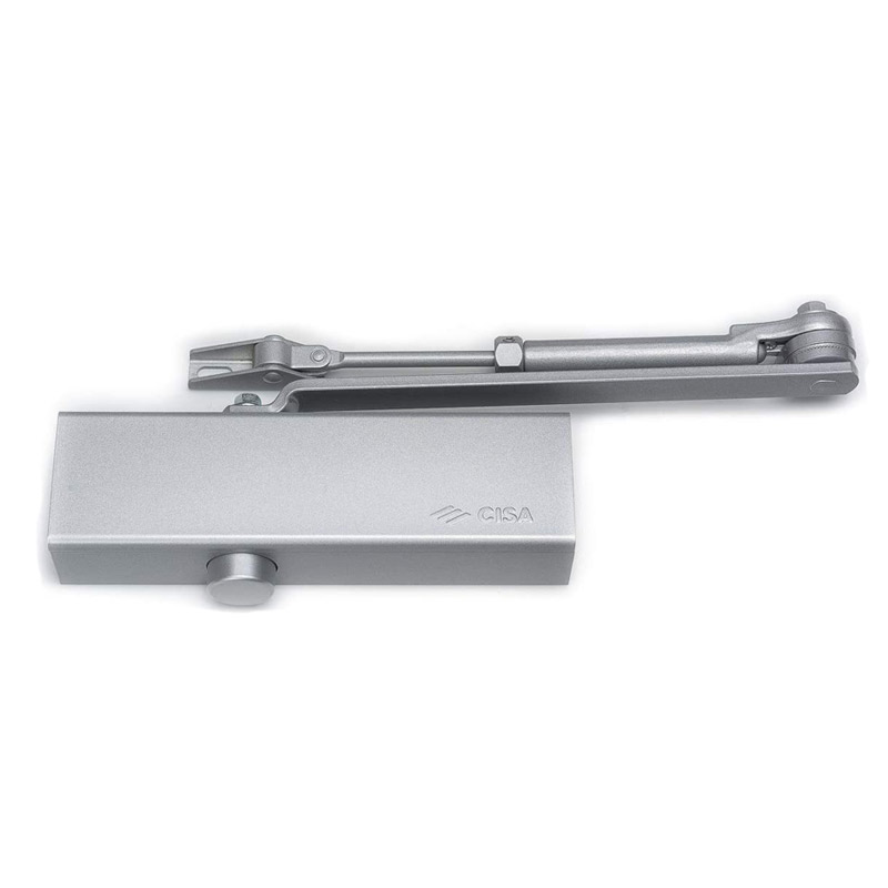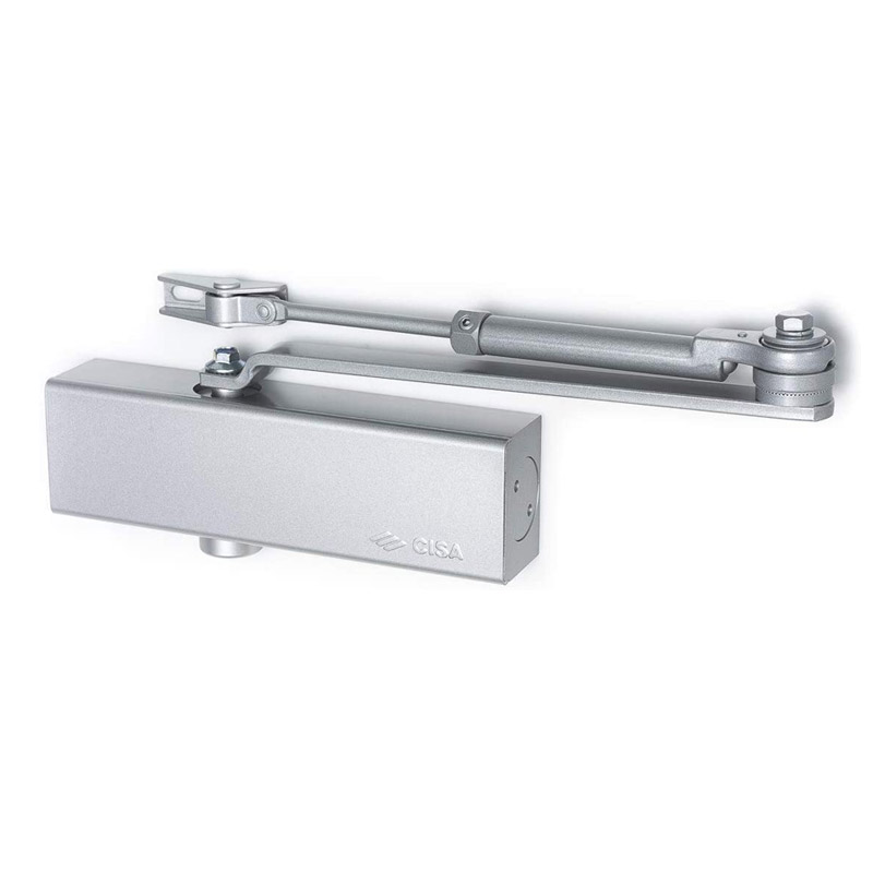 Μηχανισμός επαναφοράς πόρτας της ιταλικής Cisa. Ρυθμιζόμενη σούστα πλακέ με σώμα αλουμίνιου, C1511με stop , κατάλληλη για πόρτες εώς 80 κιλά.