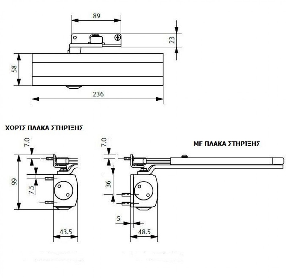 Μηχανισμός επαναφοράς πόρτας βαρέως τύπου, πλακέ, BKS 430 G-U.
