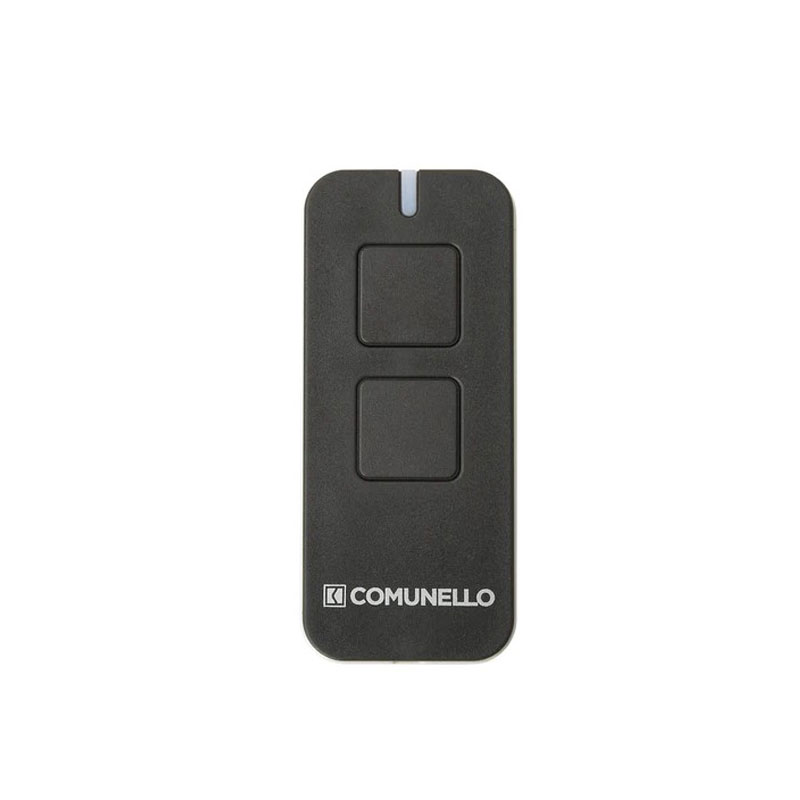 Δικάναλο τηλεκοντρόλ για γκαραζόπορτα της Comunello σε συχνότητα 433MHz . Δείτε τις οδηγίες για τον προγραμματισμό και την αντιγραφή του τηλεχειριστηρίου γκαραζόπορτας.