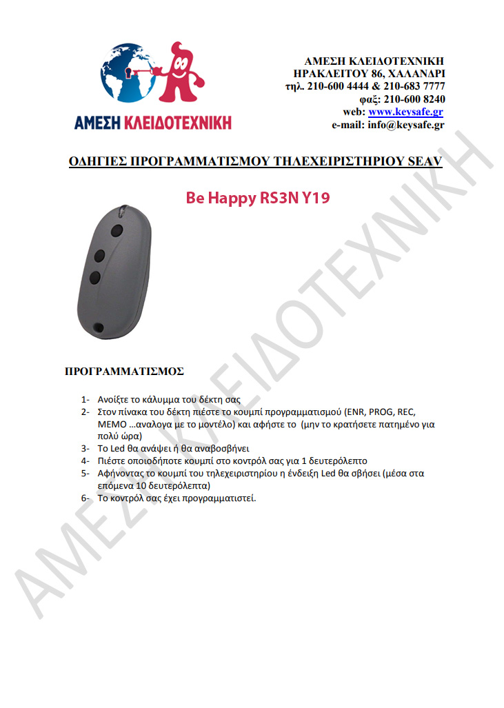 Τηλεκοντρόλ γκαραζόπορτας Seav Be Happy RS3N Y19