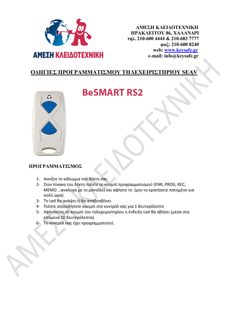 Τηλεκοντρόλ Γκαραζόπορτας SEAV BeSMART RS2