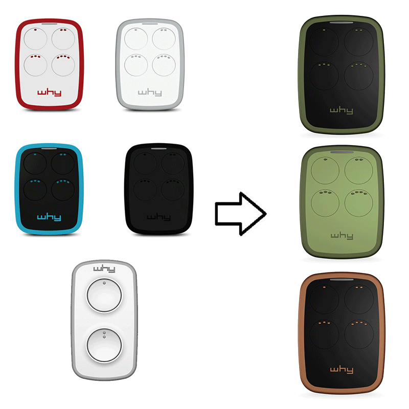 Τηλεχειριστήριο γκαραζόπορτας Why Evo Noa με τέσσερα κανάλια, συχνότητας εκπομπής 280 μέχρι 868 MHz, διαθέσιμο σε πολλά χρώματα
