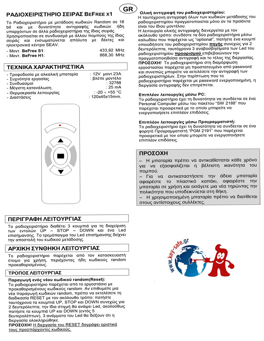 Mε μετάδοση κωδικών Random σε 18 bit και με δυνατότητα αντιγραφής κωδικών ήδη υπαρχόντων σε άλλα τηλεχειριστήρια της ίδιας σειράς.