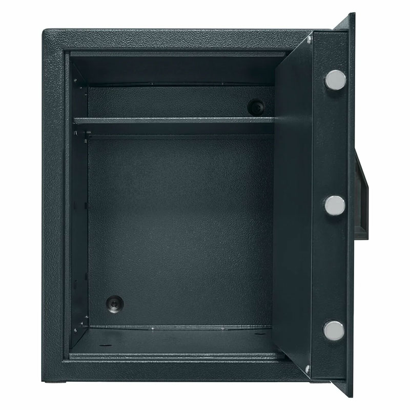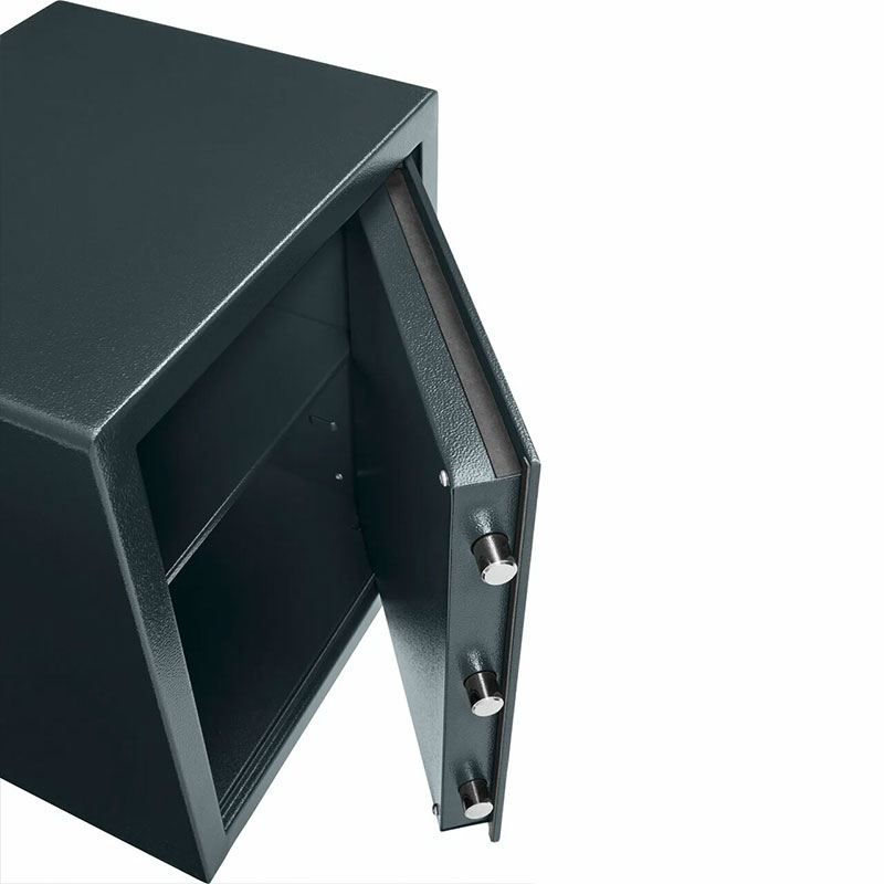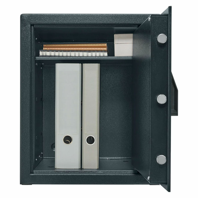 Άφθονος χώρος και καινοτόμα ηλεκτρονικά. Το χρηματοκιβώτιο προσφέρει πρακτικό βάθος φακέλων για να αποθηκεύετε τα έγγραφά σας με οργανωμένο και ασφαλή τρόπο. Λειτουργεί μέσω προγραμματιζόμενης ηλεκτρονικής κλειδαριάς με συνδυασμό με ένα εκατομμύριο πιθανές ρυθμίσεις κωδικού.
