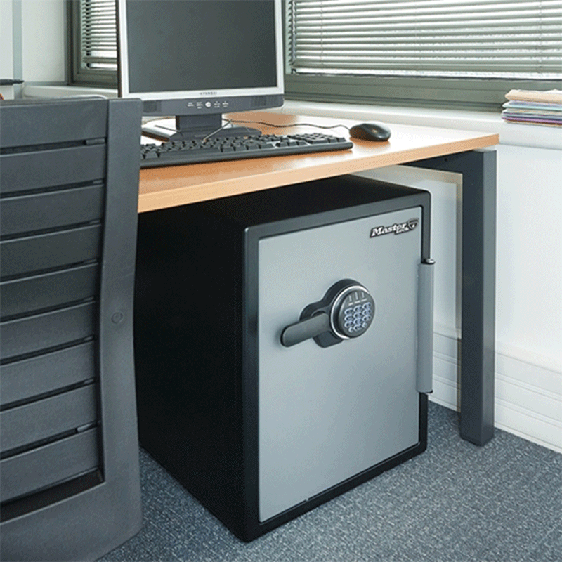 Πυρασφαλές χρηματοκιβώτιο με ηλεκτρονικό συνδυασμό από τη Master Lock. Προστασία εγγράφων, ψηφιακών συσκευών και άλλων αντικειμένων από φωτιά και νερό.