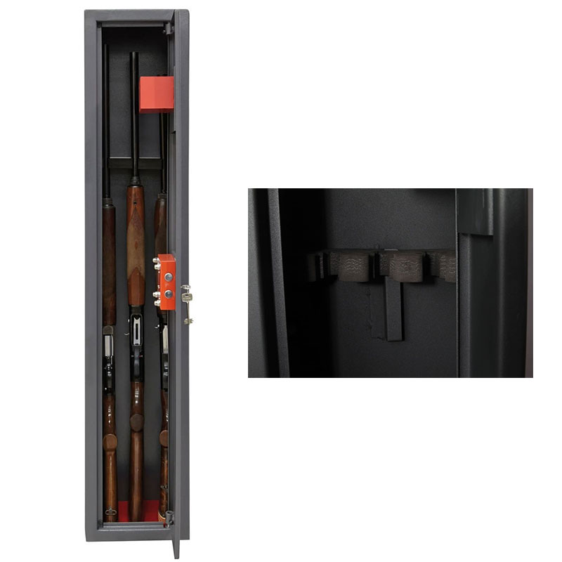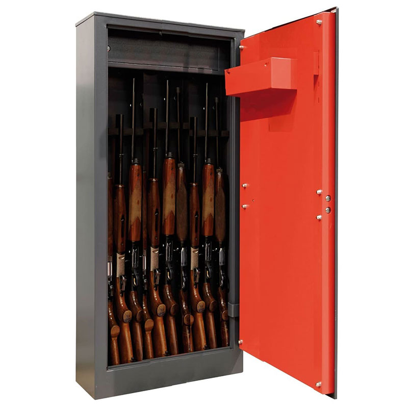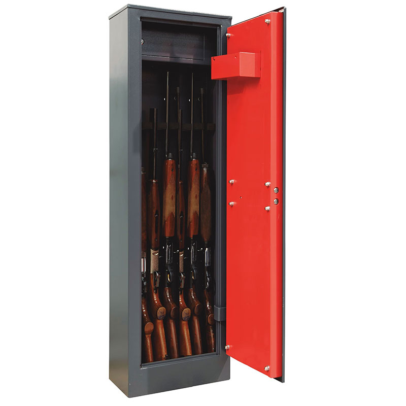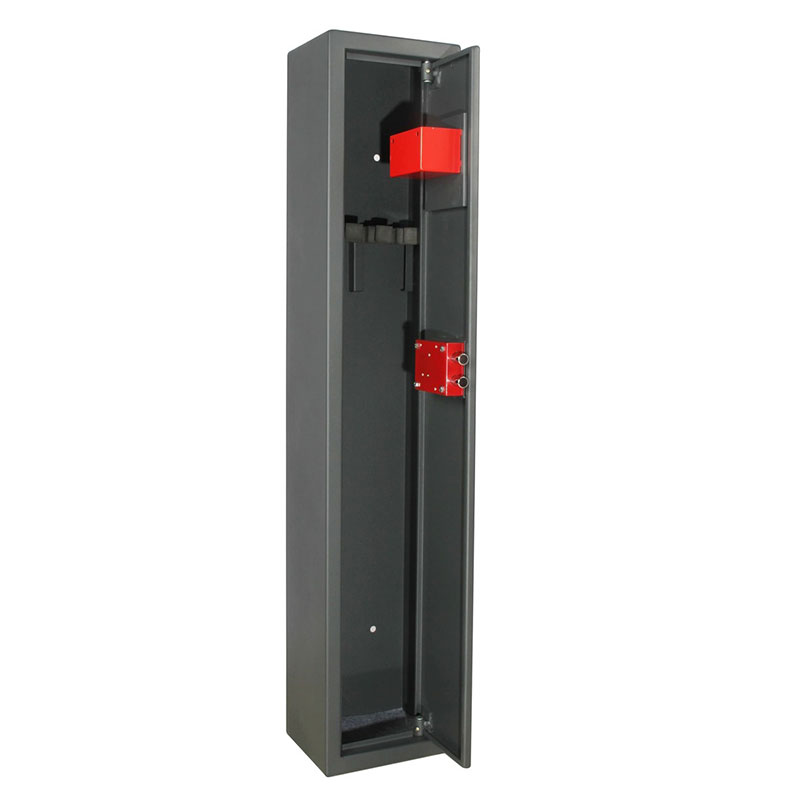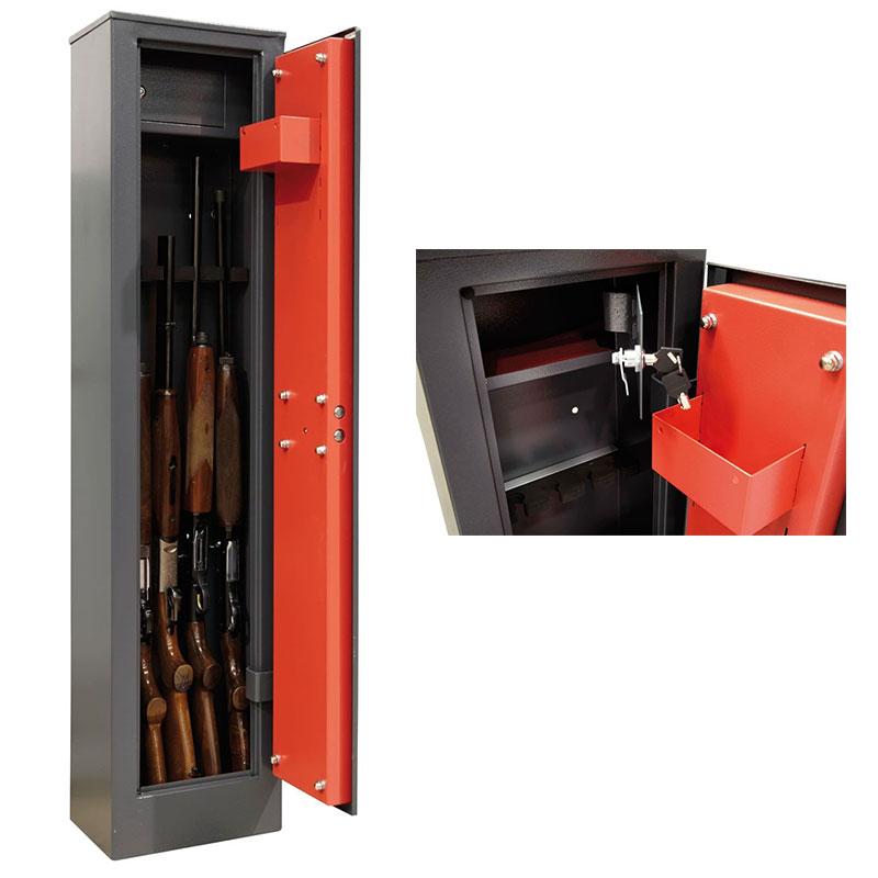 Οπλοκιβώτια με κλειδί του ισπανικού οίκου Arregui σε τέσσερις διαστάσεις, για 2, 3, 5, 7 και 10 όπλα αντίστοιχα. Ατσάλινη κατασκευή με κλειδαριά ασφαλείας και ειδικές βάσεις για τα όπλα.